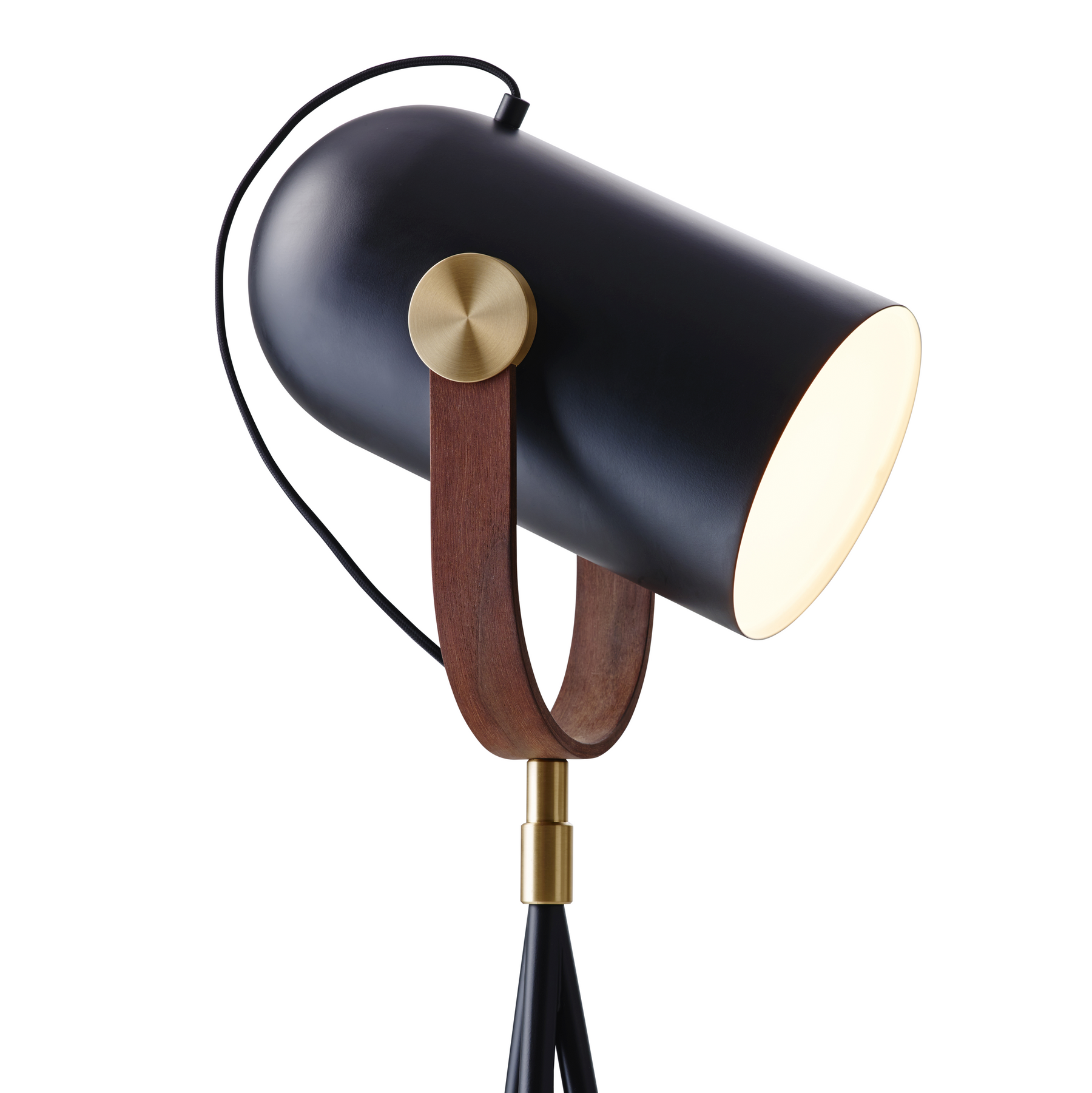 Floor lamp providing an adjustable directional light with on / off foot switch on cord. Production Process: Spun and painted aluminum shade.The Carronade lamp series is developed as a complete lighting series, originally based on the idea of a table lamp shaped like a small cannon with light.