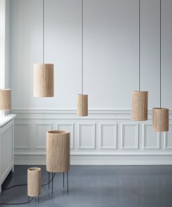RO lamp draws inspiration from the old craft maker traditions in the 1920s and 1930s where a simple lamp shade was made of ne and yarn usually tied around a wooden stand. The RO lamp shade is made of jute yarn tied around a simple base in line with the old traditions in Denmark. The lamp name RO in Danish refers to the calmness and simple human feeling of well being.