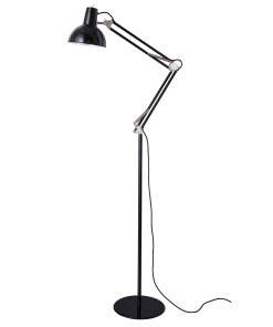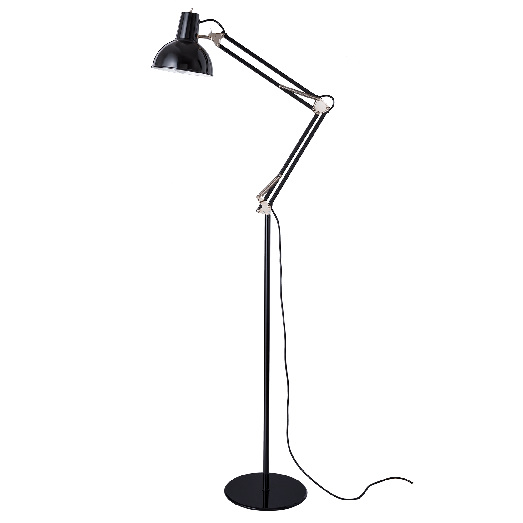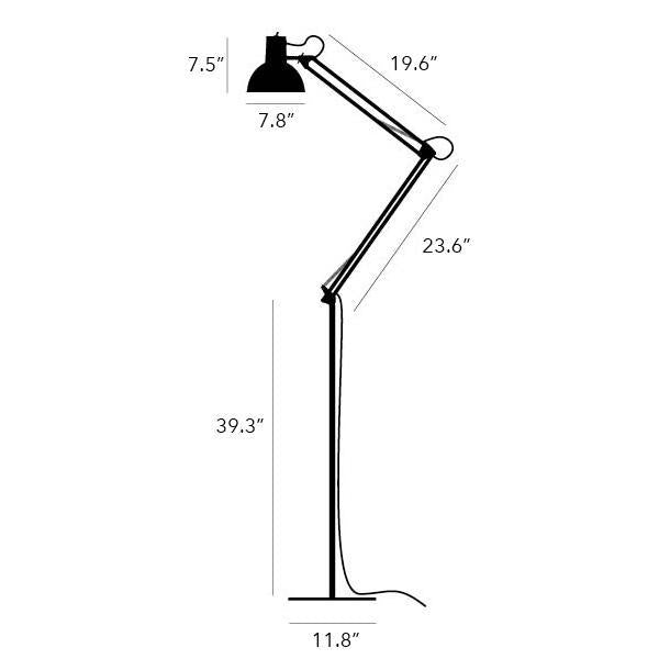Articulating, positionable spring-balanced floor lamp providing direct illumination of work surface or lounging space with satisfying chrome toggle switch on shade. Production Process: The shade is spun from aluminum then powder-coated; the stem and base are powder coated steel. All parts are hand assembled into each light in Germany. Customizable Options: Custom RAL color options also available for a surcharge.