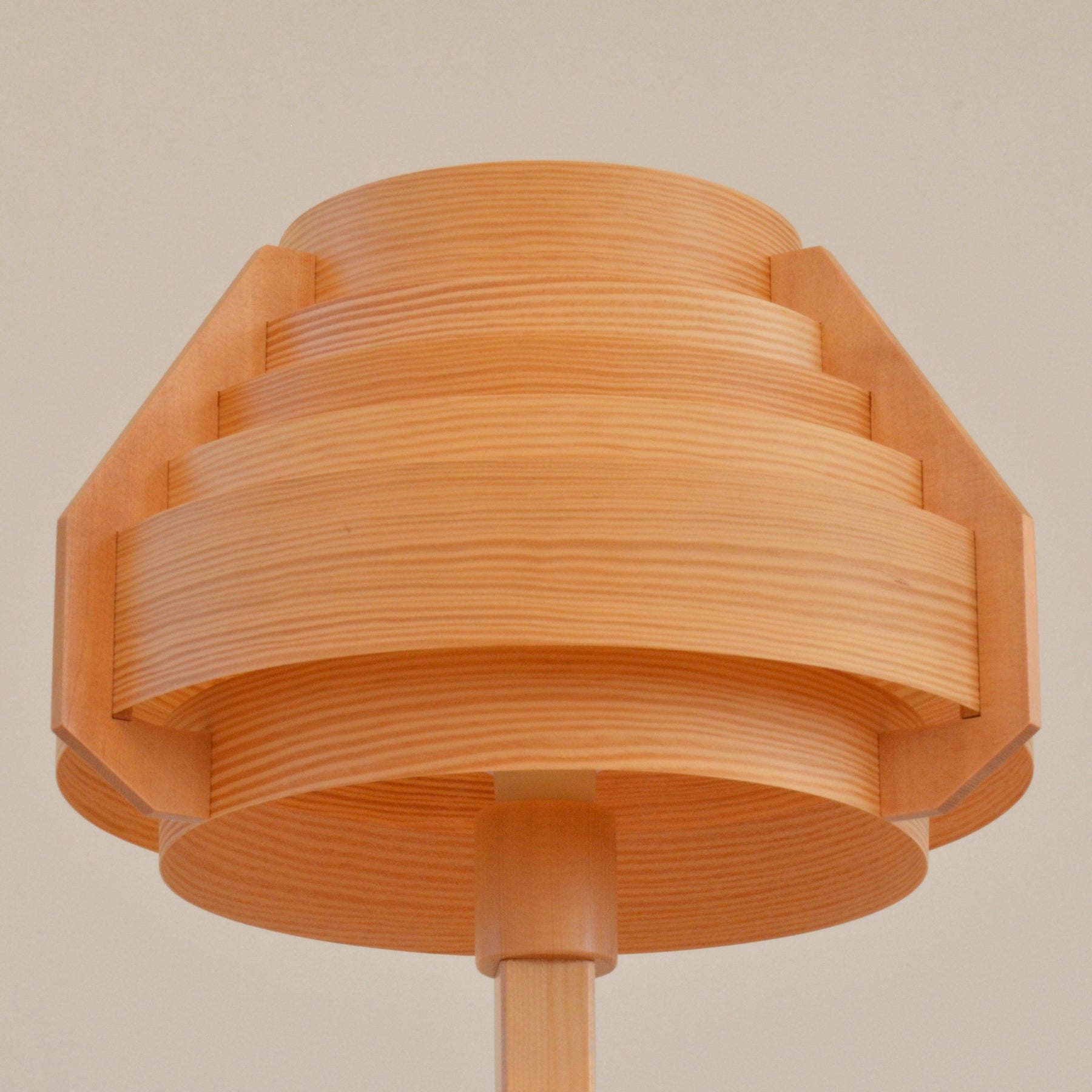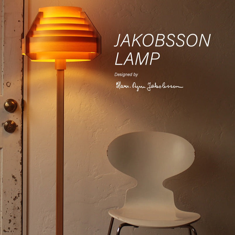 The Jakobsson collection brings out the full potential of ingredients of pine wood and has lighted up Scandinavian living for a long time as a representative of Swedish designer, Hans-Agne Jakobsson. The soft and gentle light cast through the shades is reminiscent of a lantern or a bonfire at dusk that gives people comfort during the night. It is made of thinly sliced pine wood that has been slowly and naturally dried for a long time. The pine, grown in the harsh cold environment of Europe, has a beautiful surface thanks to the slow annual growth rings. This Scandinavian masterpiece has been faithfully reproduced by Japanese craftsmanship. It is assembled by traditional Japanese craftsmen who work carefully throughout the process.